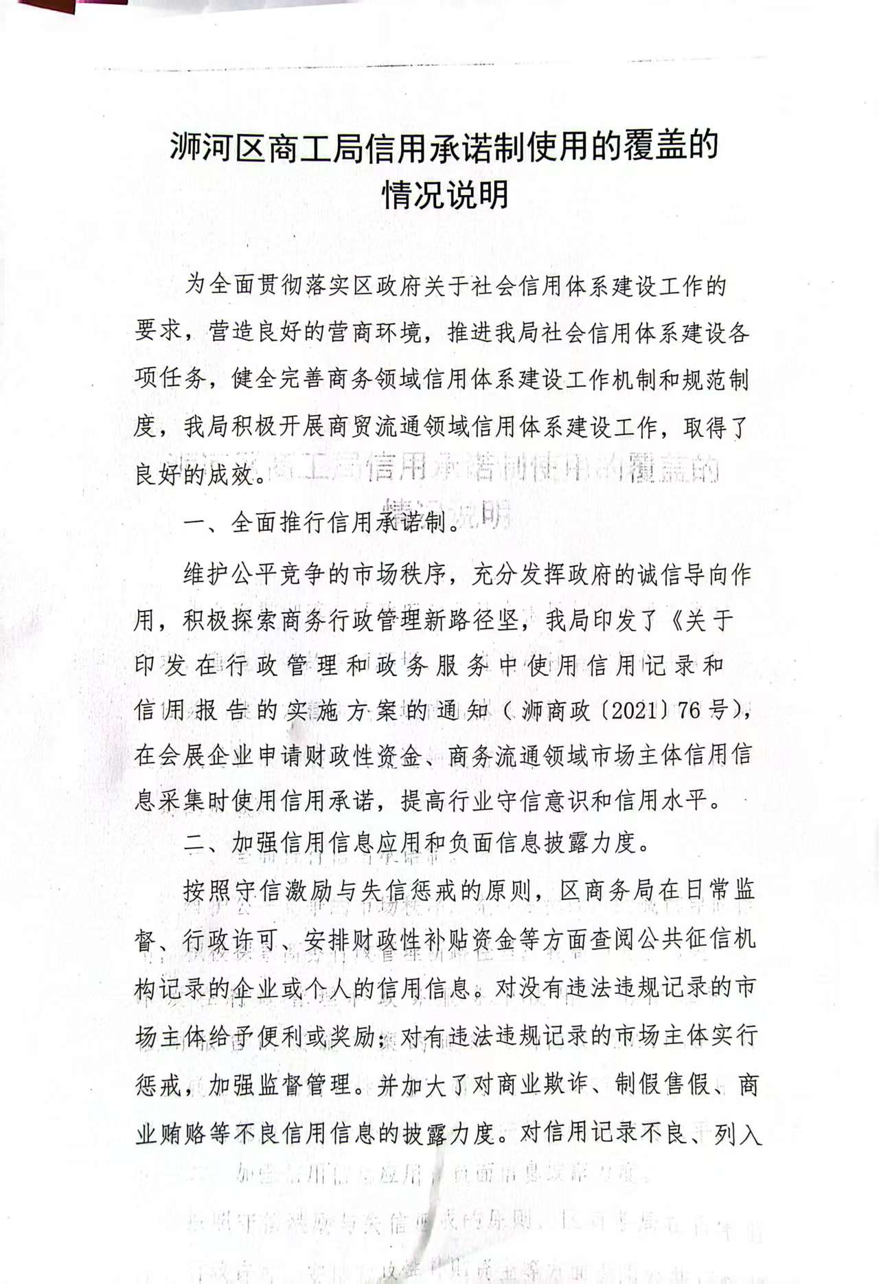 浉河区商工局信用承诺制度使用的覆盖的情况说明